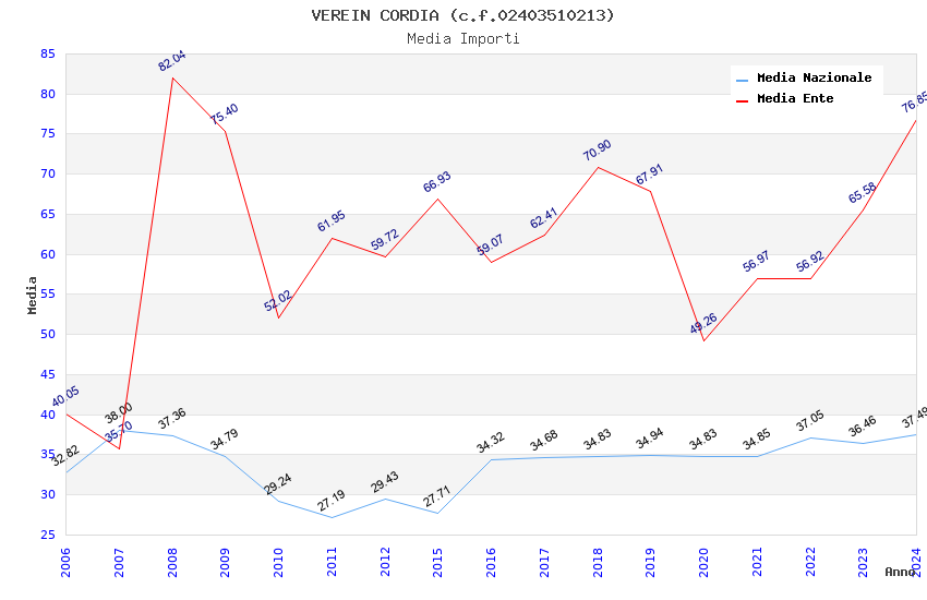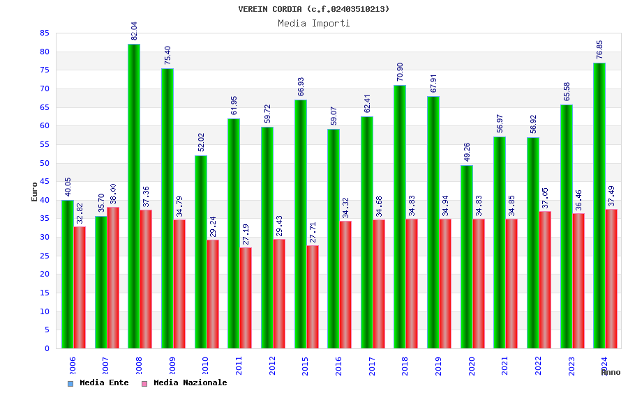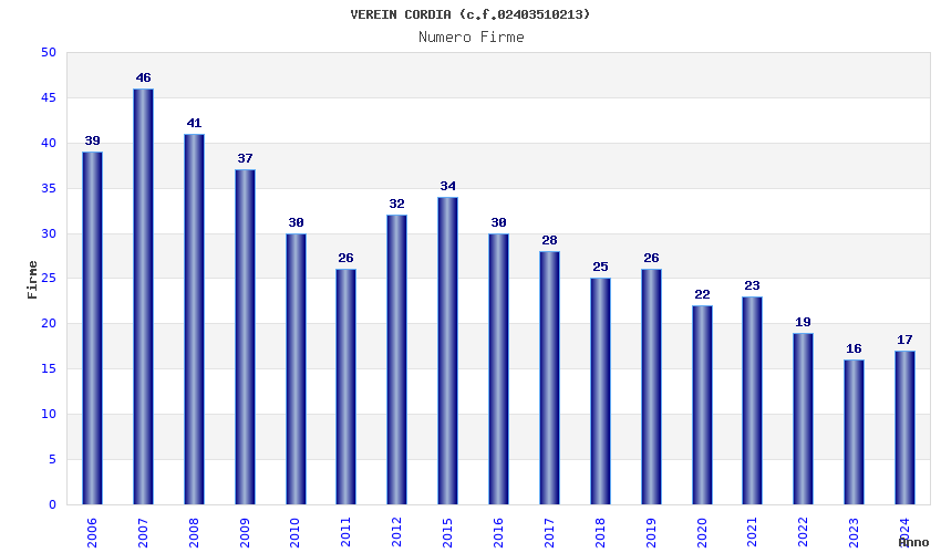 | Anno | Firme | Importi | Media | Naz. | Reg. | Prov. | Comu. |