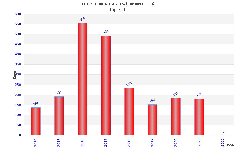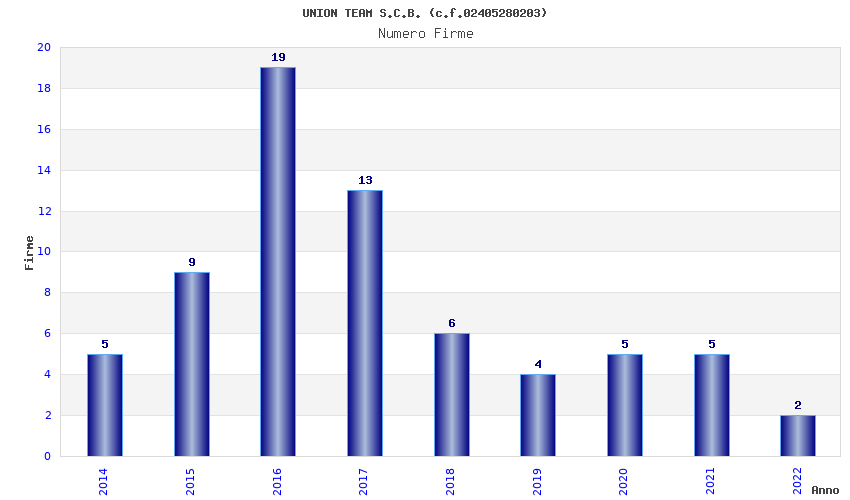 | Anno | Firme | Importi | Media | Naz. | Reg. | Prov. | Comu. |