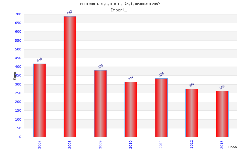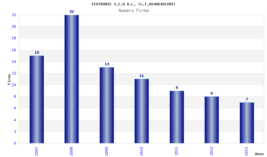 | Anno | Firme | Importi | Media | Naz. | Reg. | Prov. | Comu. |