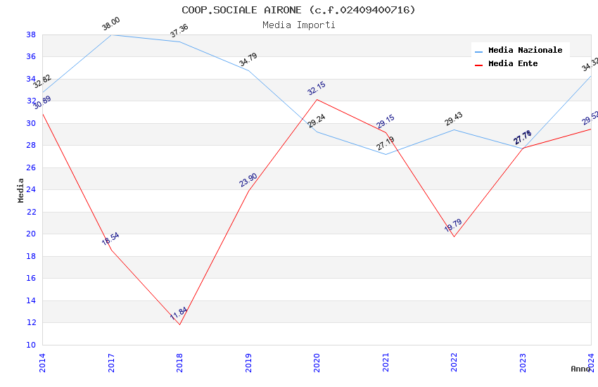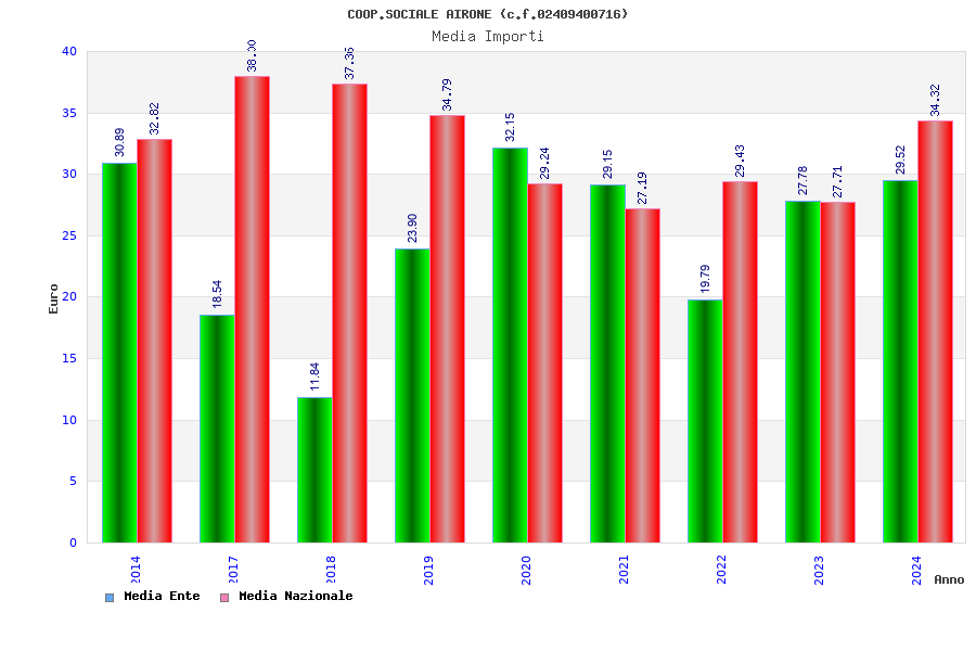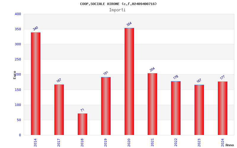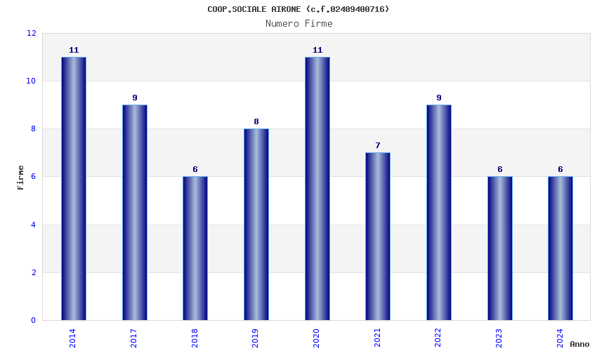 | Anno | Firme | Importi | Media | Naz. | Reg. | Prov. | Comu. |