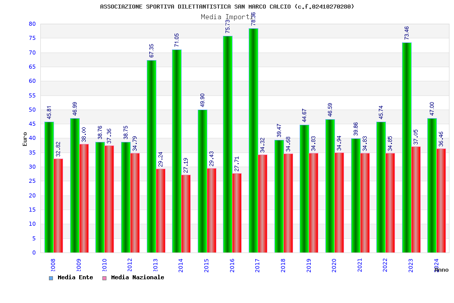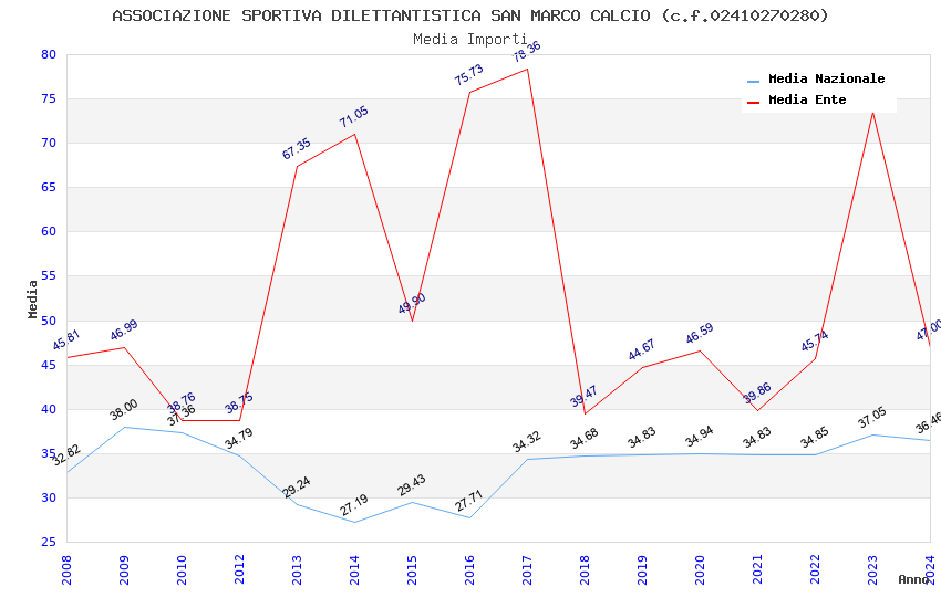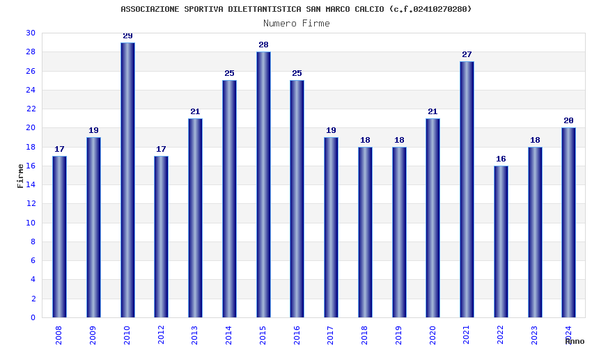 | Anno | Firme | Importi | Media | Naz. | Reg. | Prov. | Comu. |