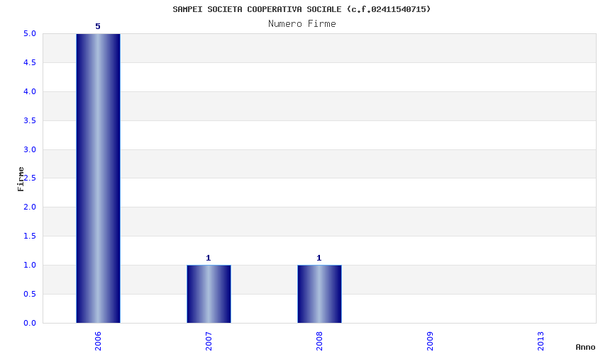 | Anno | Firme | Importi | Media | Naz. | Reg. | Prov. | Comu. |