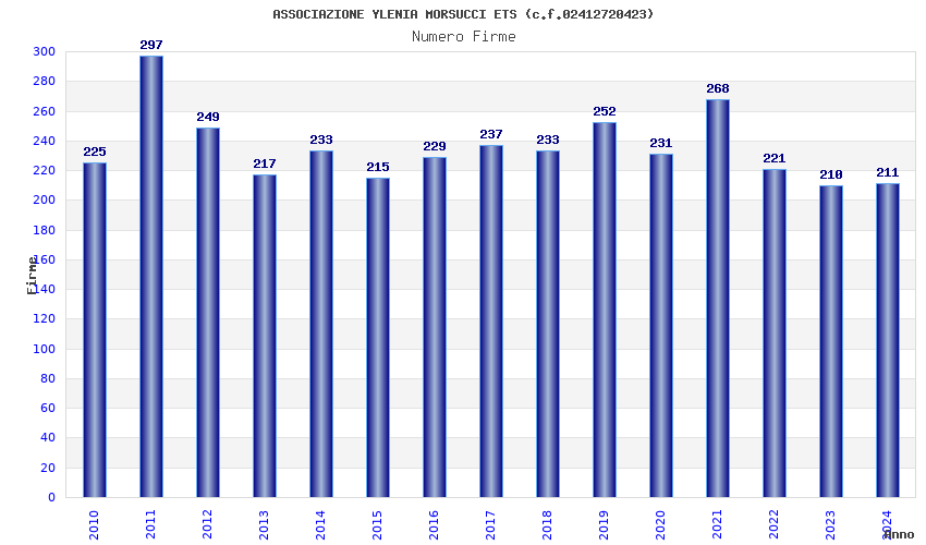 | Anno | Firme | Importi | Media | Naz. | Reg. | Prov. | Comu. |