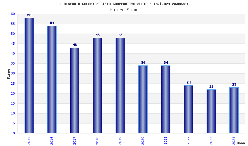 | Anno | Firme | Importi | Media | Naz. | Reg. | Prov. | Comu. |