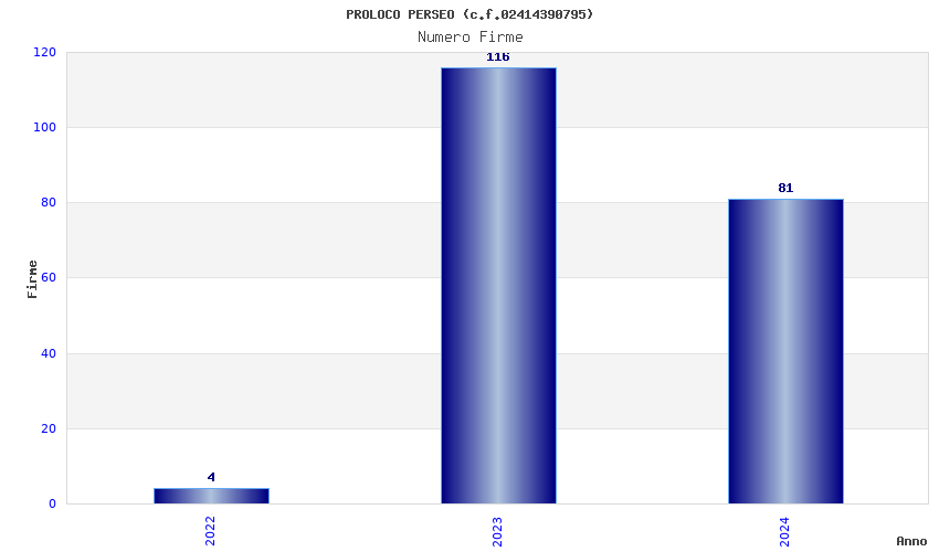 | Anno | Firme | Importi | Media | Naz. | Reg. | Prov. | Comu. |