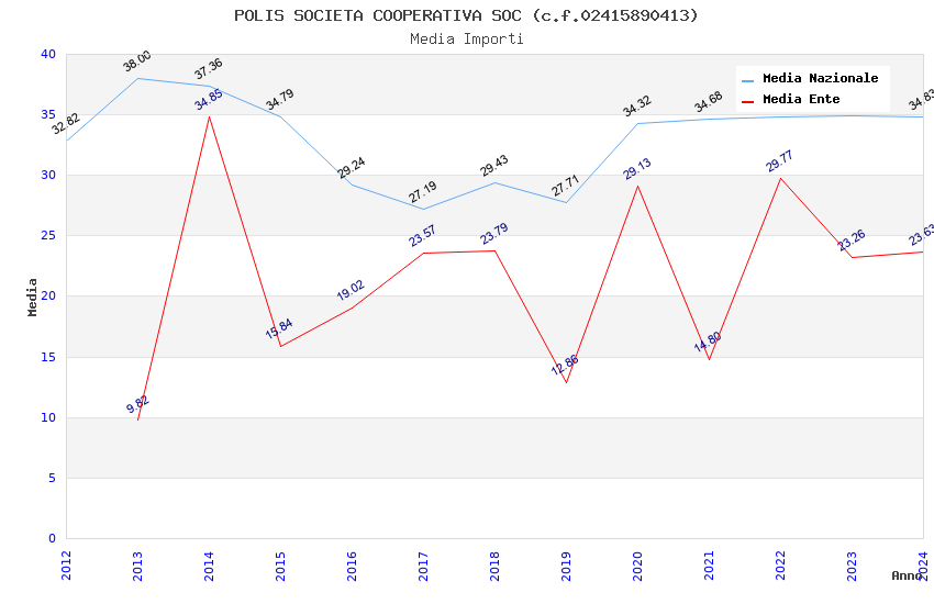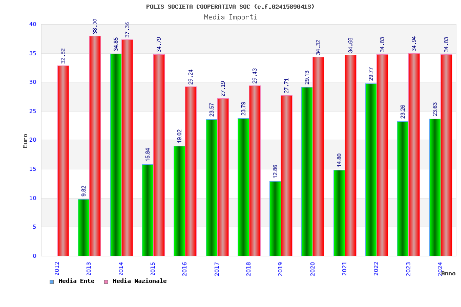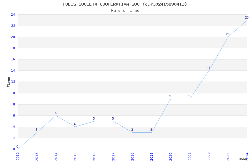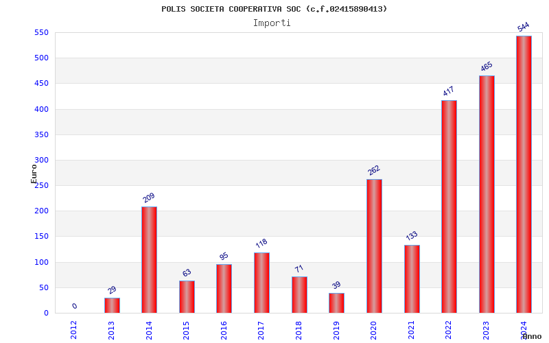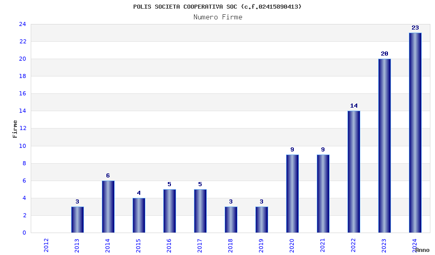 | Anno | Firme | Importi | Media | Naz. | Reg. | Prov. | Comu. |
