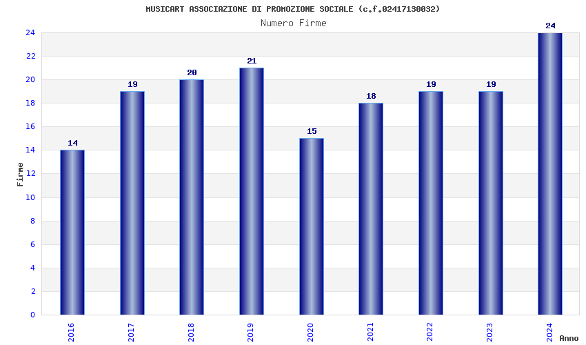 | Anno | Firme | Importi | Media | Naz. | Reg. | Prov. | Comu. |