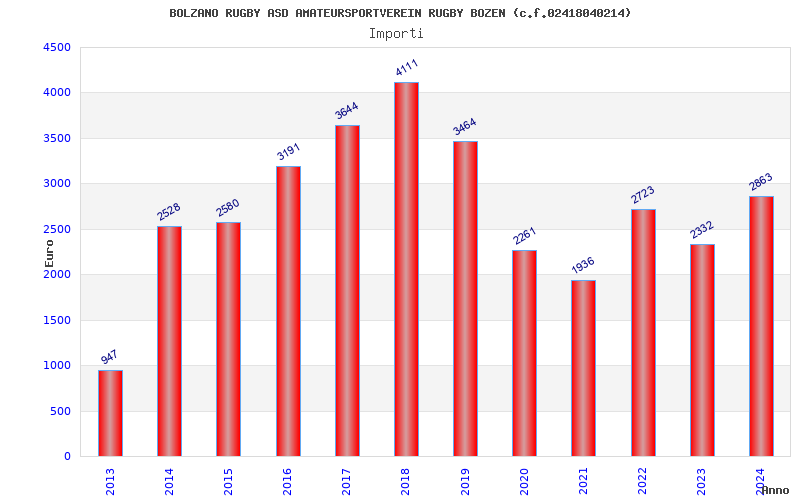 | Anno | Firme | Importi | Media | Naz. | Reg. | Prov. | Comu. |