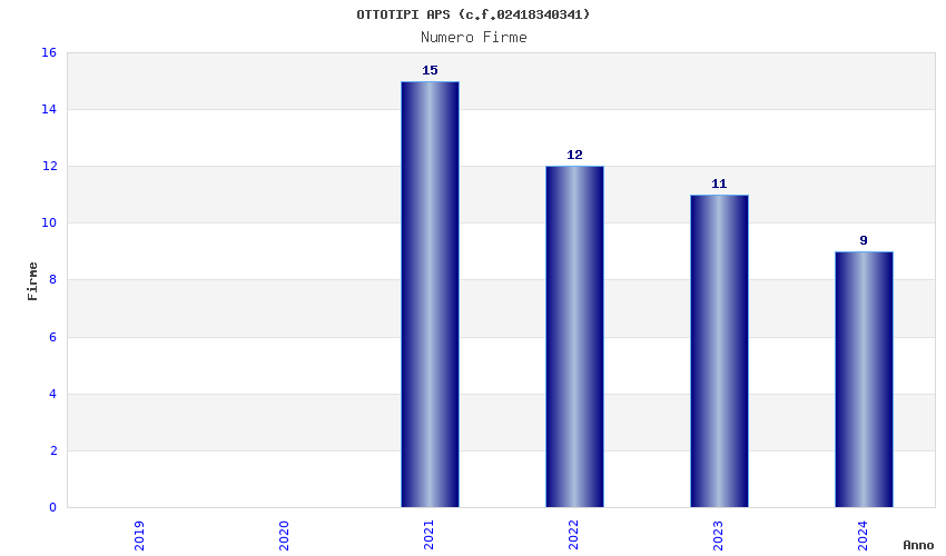 | Anno | Firme | Importi | Media | Naz. | Reg. | Prov. | Comu. |