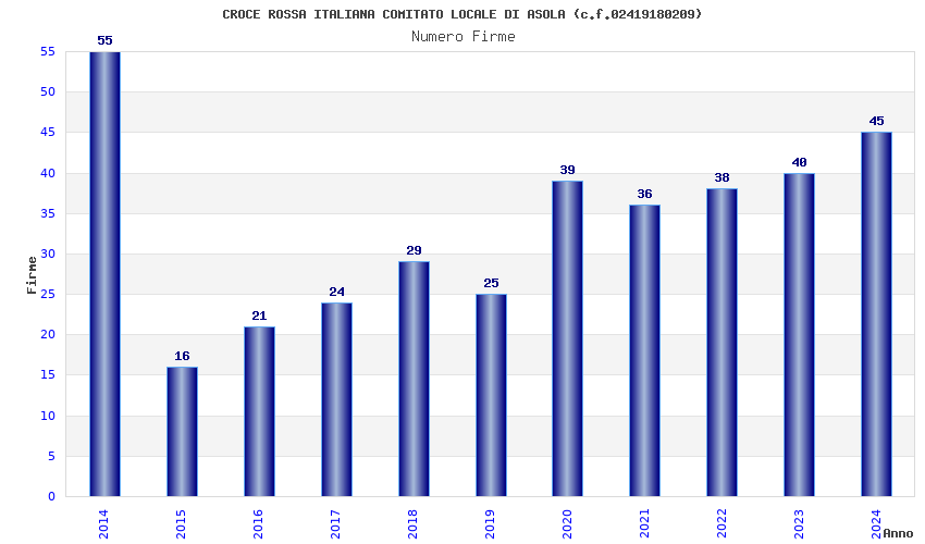 | Anno | Firme | Importi | Media | Naz. | Reg. | Prov. | Comu. |