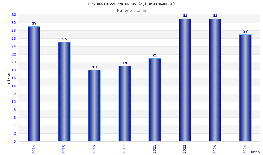| Anno | Firme | Importi | Media | Naz. | Reg. | Prov. | Comu. |