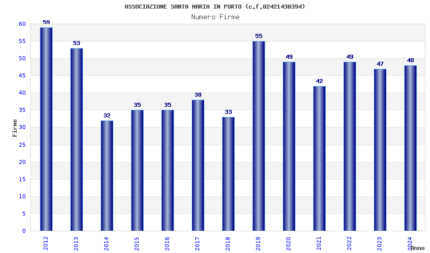 | Anno | Firme | Importi | Media | Naz. | Reg. | Prov. | Comu. |