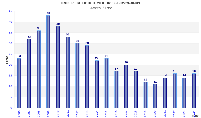 | Anno | Firme | Importi | Media | Naz. | Reg. | Prov. | Comu. |