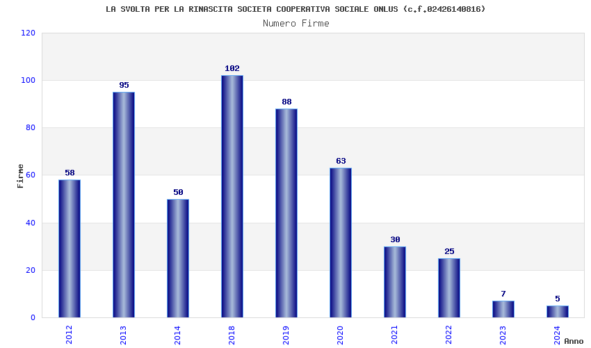 | Anno | Firme | Importi | Media | Naz. | Reg. | Prov. | Comu. |