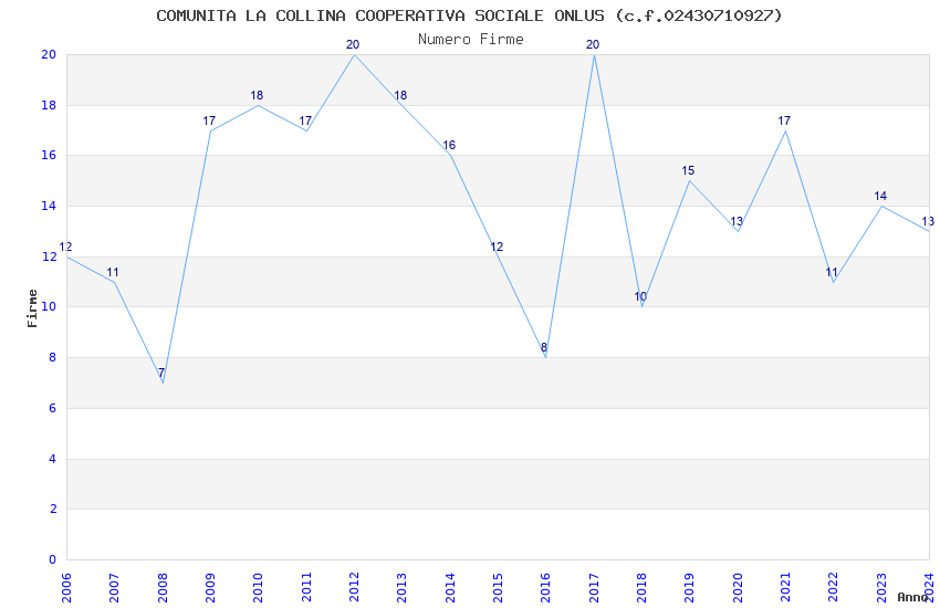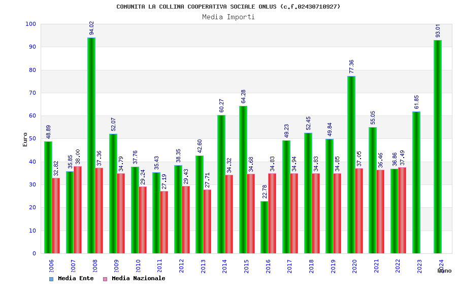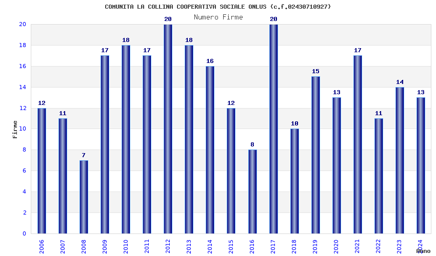| Anno | Firme | Importi | Media | Naz. | Reg. | Prov. | Comu. |