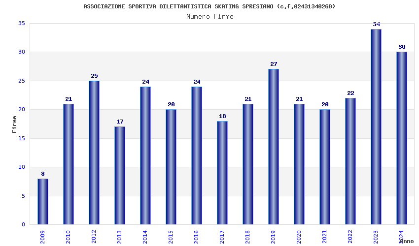 | Anno | Firme | Importi | Media | Naz. | Reg. | Prov. | Comu. |