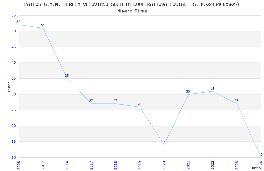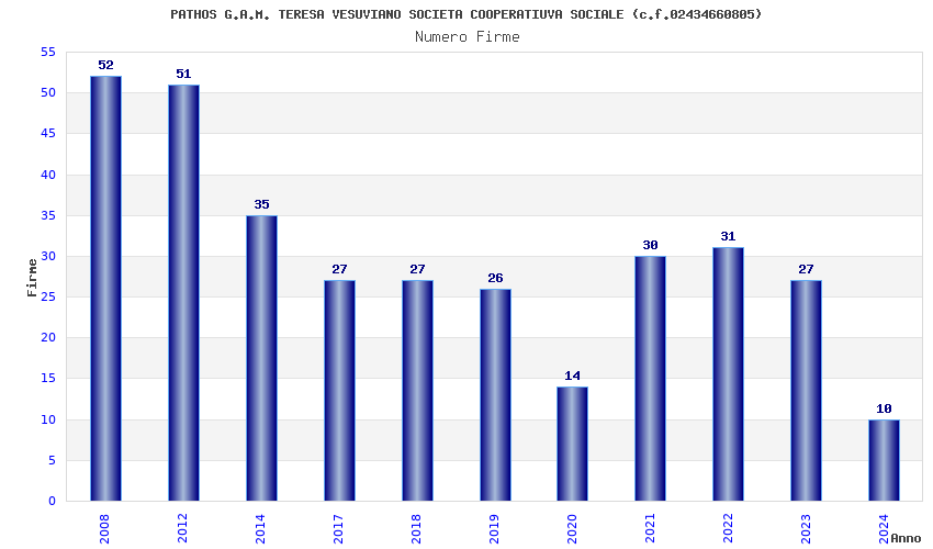 | Anno | Firme | Importi | Media | Naz. | Reg. | Prov. | Comu. |