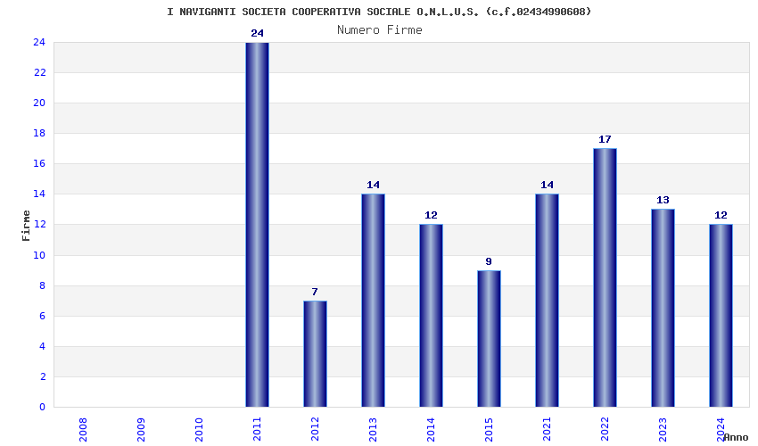 | Anno | Firme | Importi | Media | Naz. | Reg. | Prov. | Comu. |