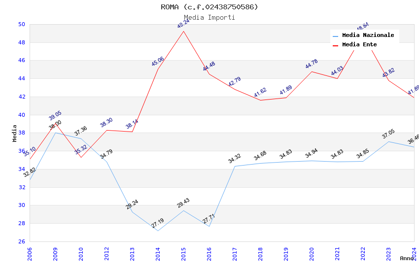| Anno | Firme | Importi | Media | Naz. | Reg. | Prov. | Comu. |