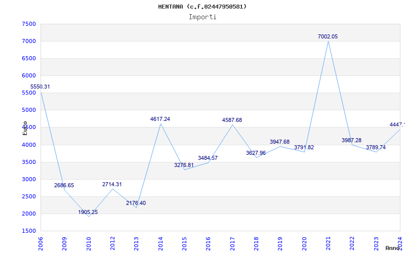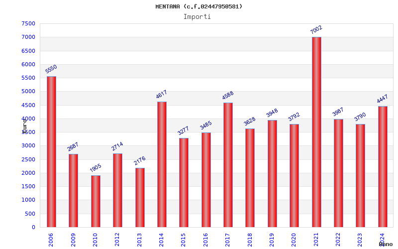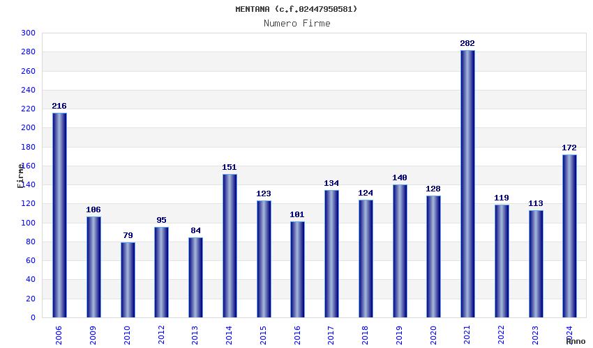 | Anno | Firme | Importi | Media | Naz. | Reg. | Prov. | Comu. |
