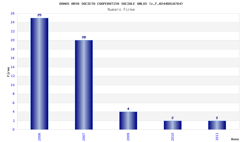 | Anno | Firme | Importi | Media | Naz. | Reg. | Prov. | Comu. |
