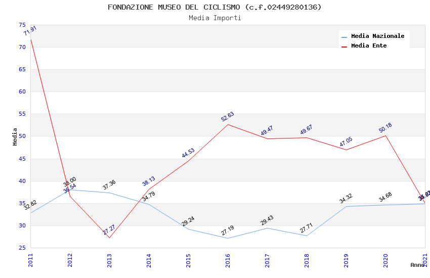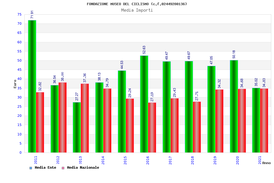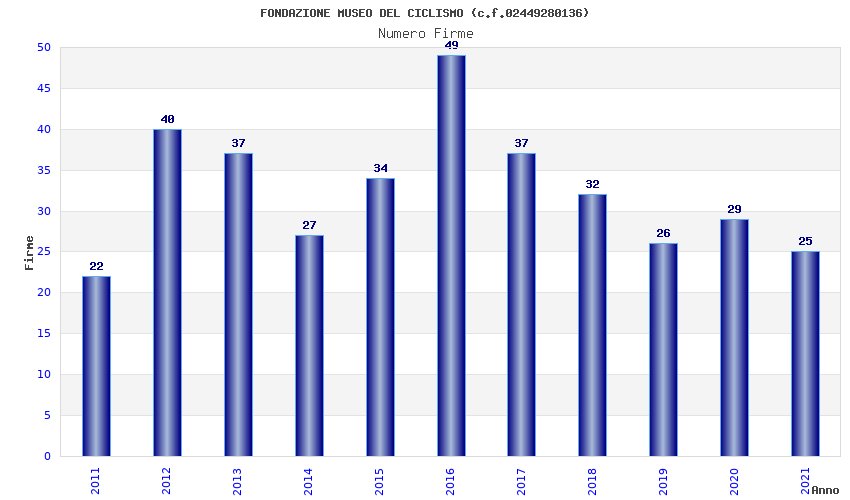 | Anno | Firme | Importi | Media | Naz. | Reg. | Prov. | Comu. |