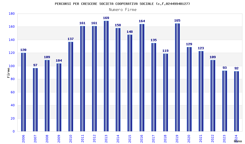 | Anno | Firme | Importi | Media | Naz. | Reg. | Prov. | Comu. |