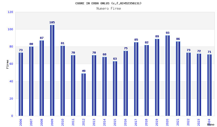 | 2020 | 93 | 6.479,09 | 69,67 | 8.665 | 2.075 | 104 | 12 |