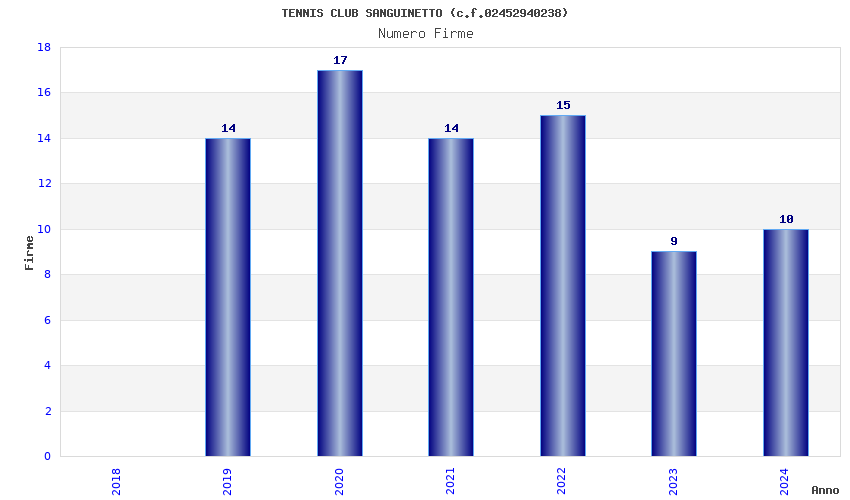 | Anno | Firme | Importi | Media | Naz. | Reg. | Prov. | Comu. |