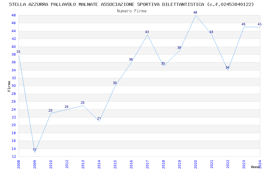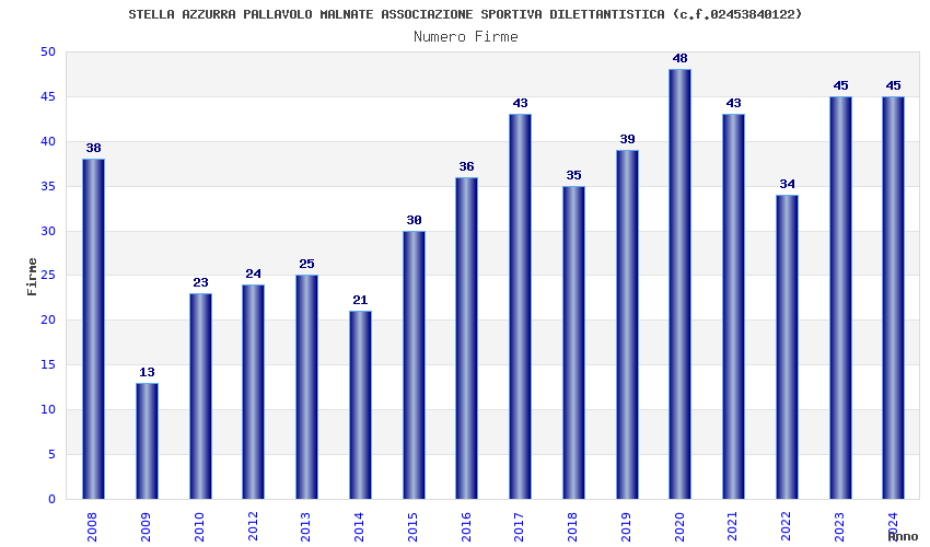 | 2023 | 45 | 2.150,04 | 47,78 | 22.408 | 4.739 | 368 | 6 |