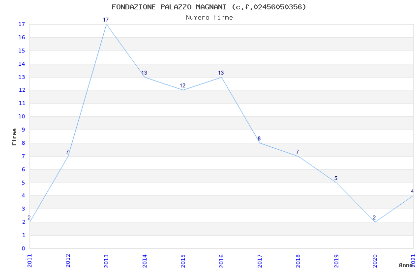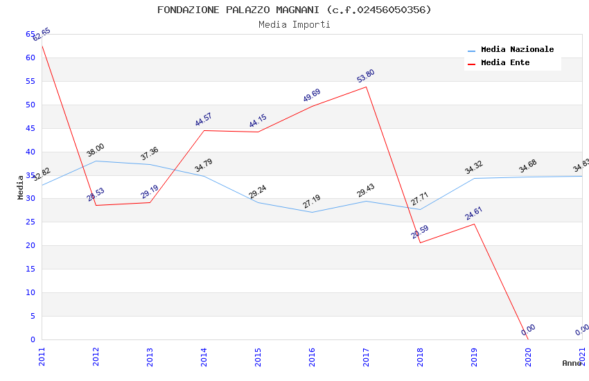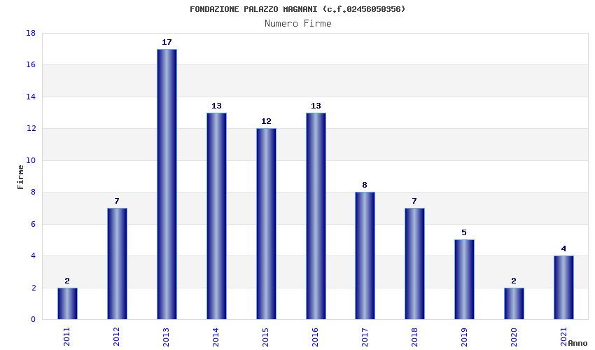 | Anno | Firme | Importi | Media | Naz. | Reg. | Prov. | Comu. |