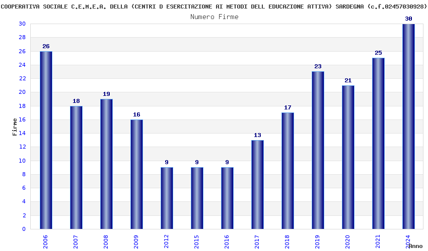 | Anno | Firme | Importi | Media | Naz. | Reg. | Prov. | Comu. |