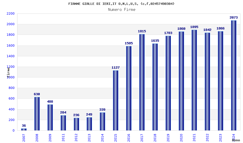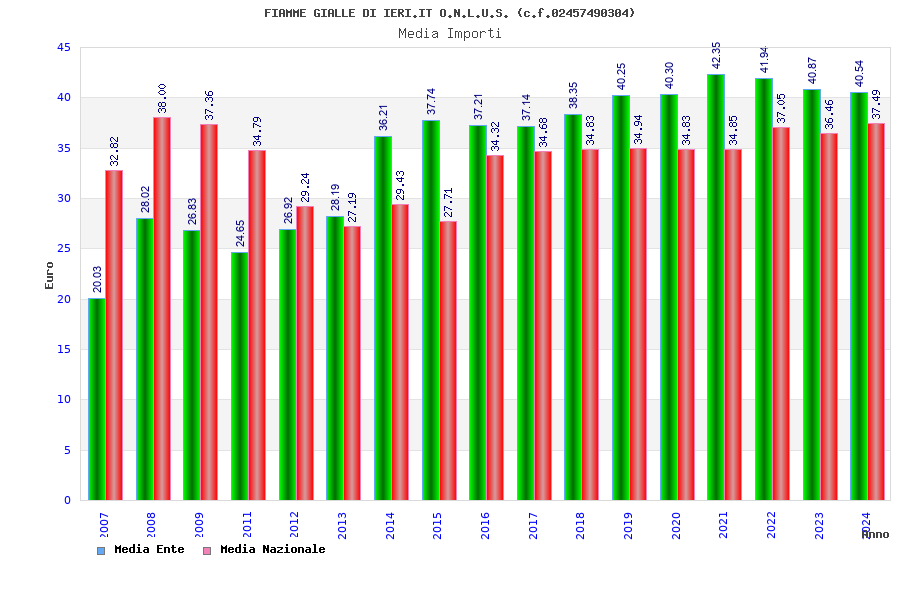| Anno | Firme | Importi | Media | Naz. | Reg. | Prov. | Comu. |