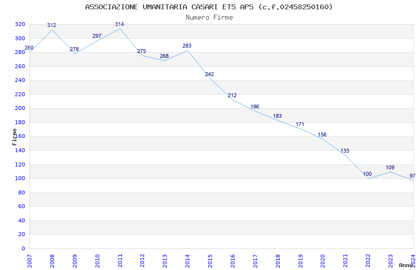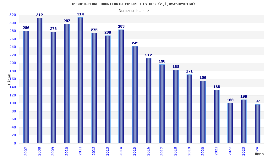 | Anno | Firme | Importi | Media | Naz. | Reg. | Prov. | Comu. |
