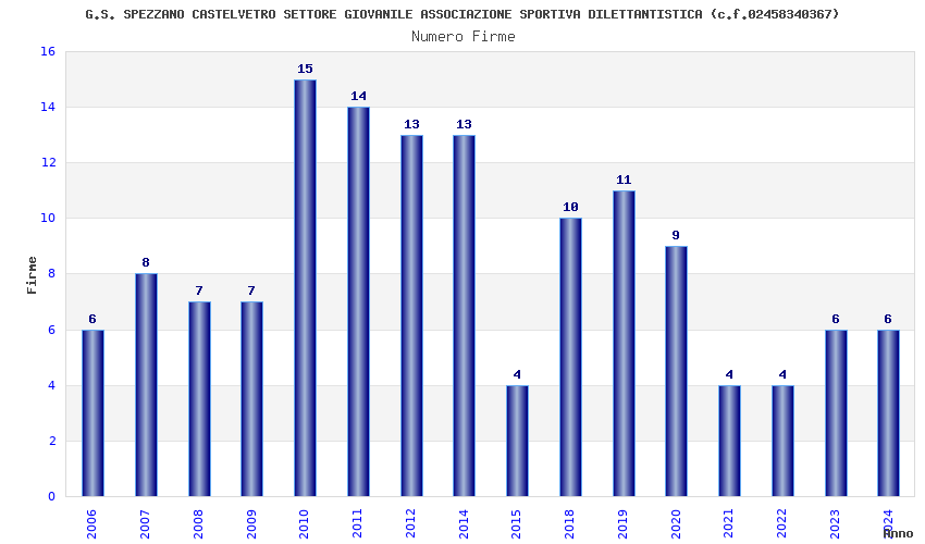 | 2010 | 15 | 346,36 | 23,09 | 32.874 | 3.039 | 399 | 5 |