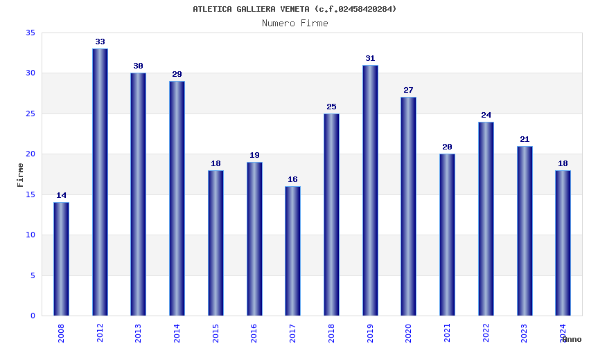 | Anno | Firme | Importi | Media | Naz. | Reg. | Prov. | Comu. |