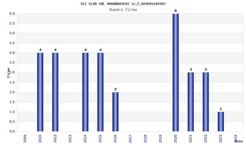 | Anno | Firme | Importi | Media | Naz. | Reg. | Prov. | Comu. |