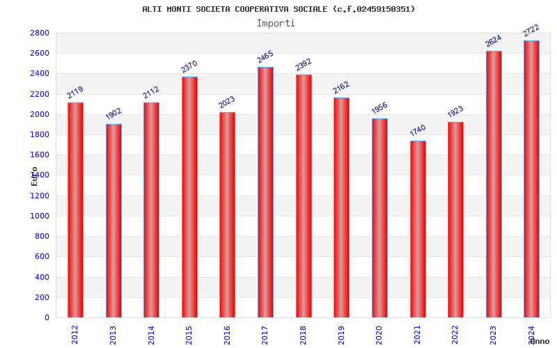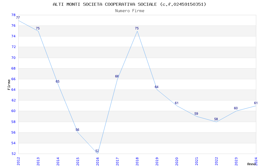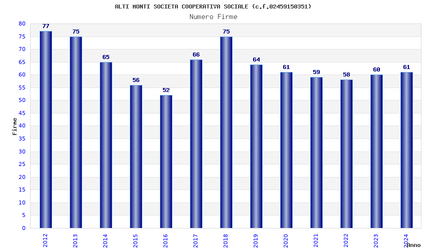 | 2024 | 61 | 2.722,10 | 44,62 | 18.853 | 1.598 | 207 | 2 |