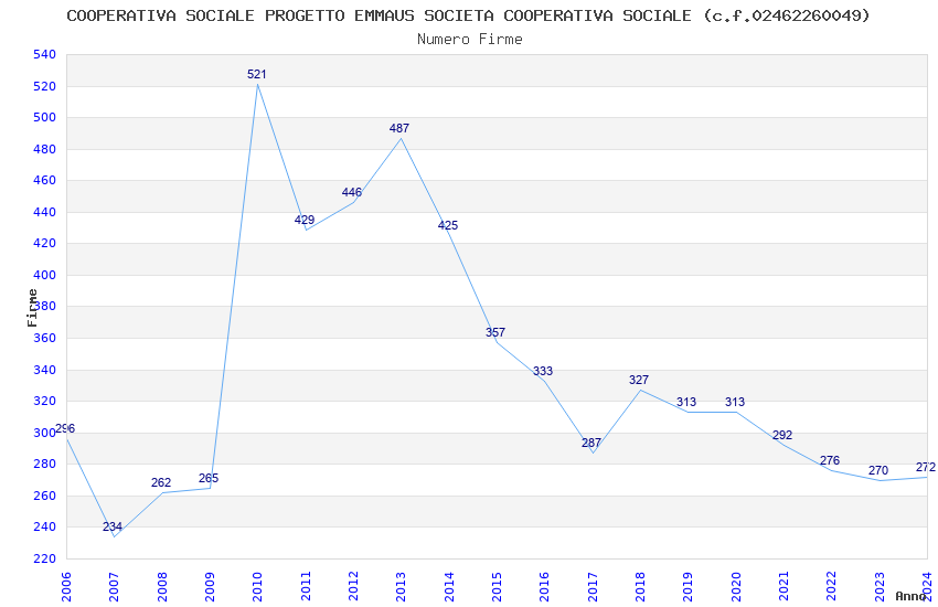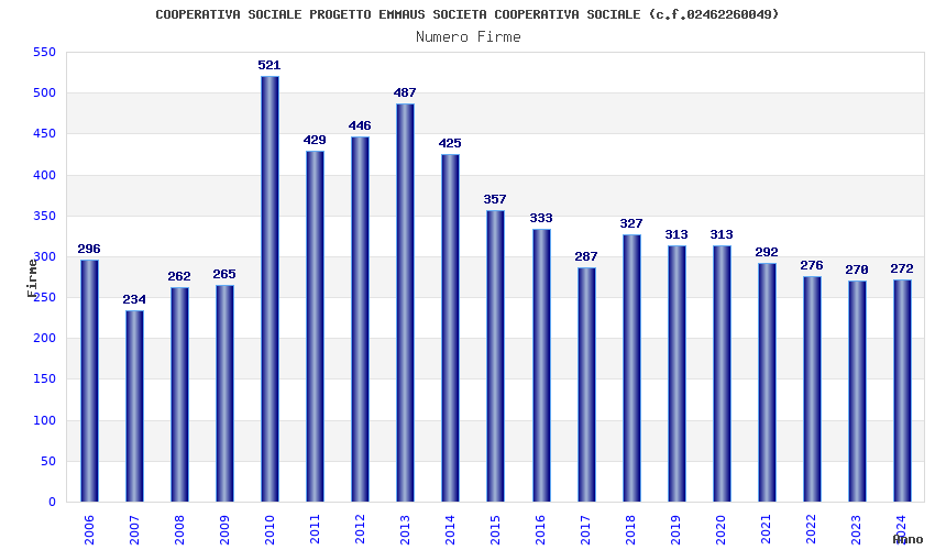 | 2024 | 272 | 8.166,17 | 30,02 | 6.260 | 397 | 53 | 5 |