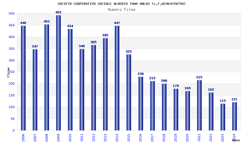 | Anno | Firme | Importi | Media | Naz. | Reg. | Prov. | Comu. |