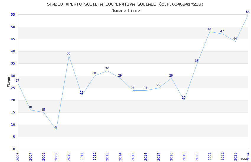 | 2024 | 55 | 2.057,19 | 37,40 | 23.525 | 2.179 | 429 | 7 |