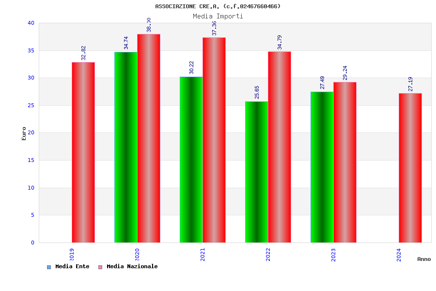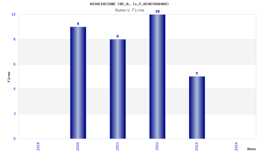 | Anno | Firme | Importi | Media | Naz. | Reg. | Prov. | Comu. |