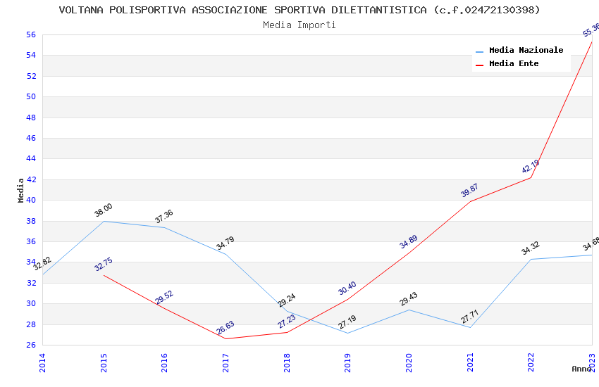 | Anno | Firme | Importi | Media | Naz. | Reg. | Prov. | Comu. |