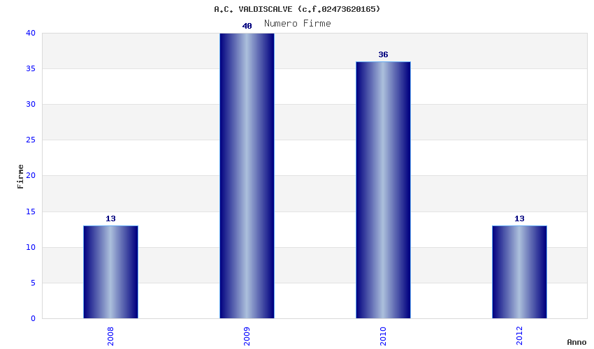 | Anno | Firme | Importi | Media | Naz. | Reg. | Prov. | Comu. |