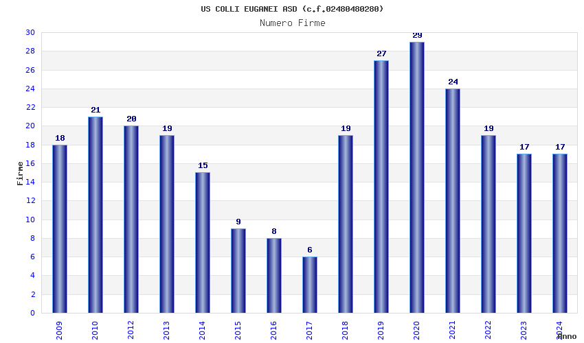 | Anno | Firme | Importi | Media | Naz. | Reg. | Prov. | Comu. |