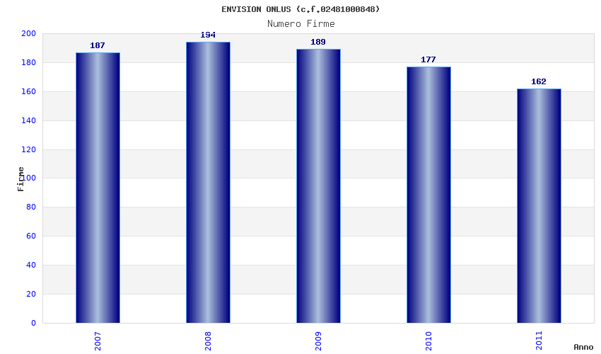 | Anno | Firme | Importi | Media | Naz. | Reg. | Prov. | Comu. |