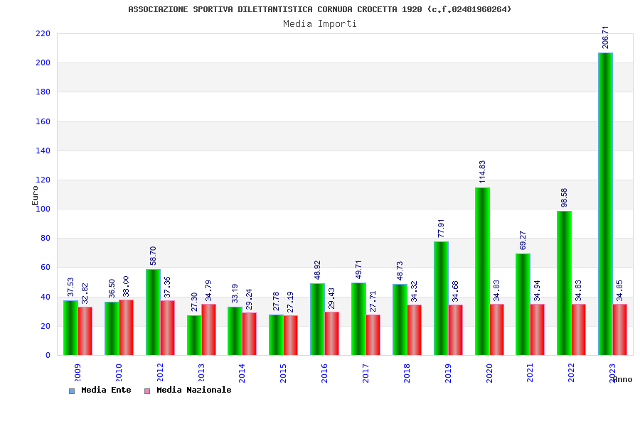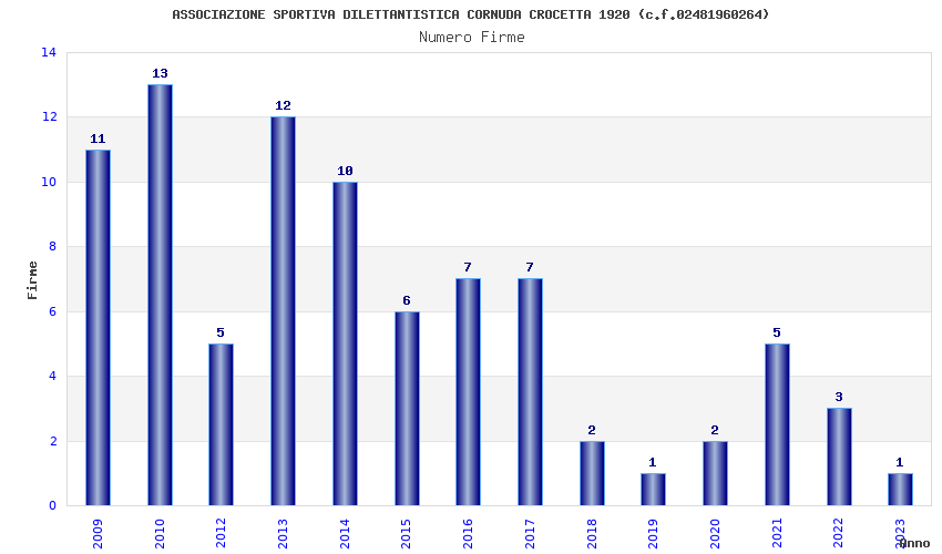| Anno | Firme | Importi | Media | Naz. | Reg. | Prov. | Comu. |