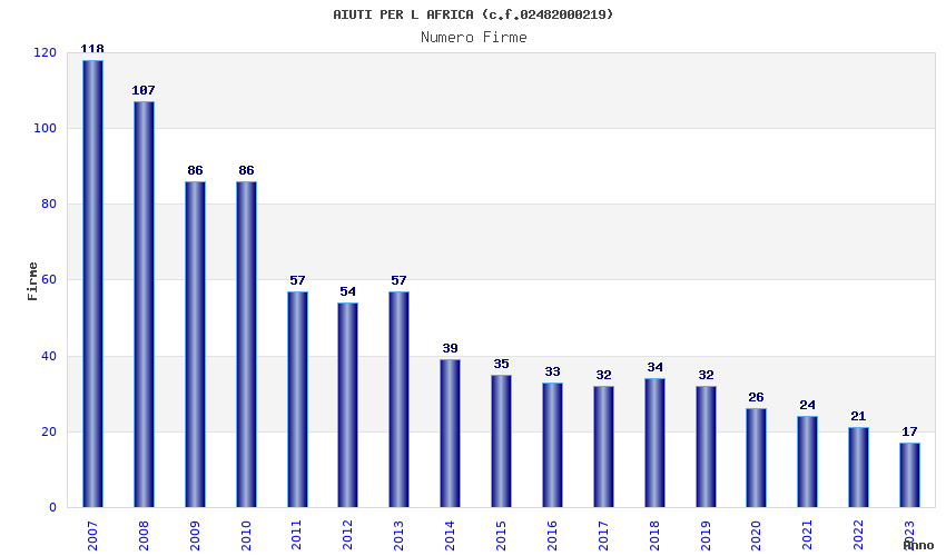 | Anno | Firme | Importi | Media | Naz. | Reg. | Prov. | Comu. |