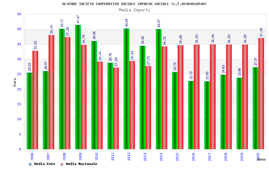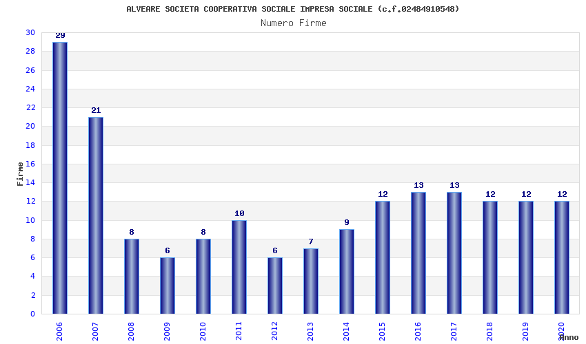 | Anno | Firme | Importi | Media | Naz. | Reg. | Prov. | Comu. |