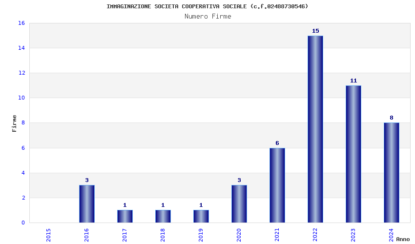 | Anno | Firme | Importi | Media | Naz. | Reg. | Prov. | Comu. |
